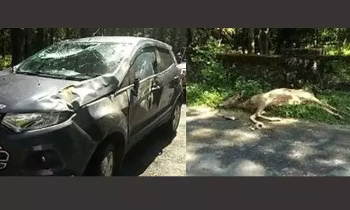 കൂവപ്പടി സ്വദേശി സജിത്തിനാണ് പരിക്കേറ്റത്. അപകടത്തില് കാര് ഭാഗികമായി തകര്ന്നു. കാറിടിച്ചതിനെ തുടര്ന്ന് റോഡില് വീണു കിടന്ന മ്ളാവ് ഫോറസ്റ്റ് അധികൃതര് ചികിത്സക്കായി കൊണ്ടു പോകും വഴിയാണ് ചത്തത്.