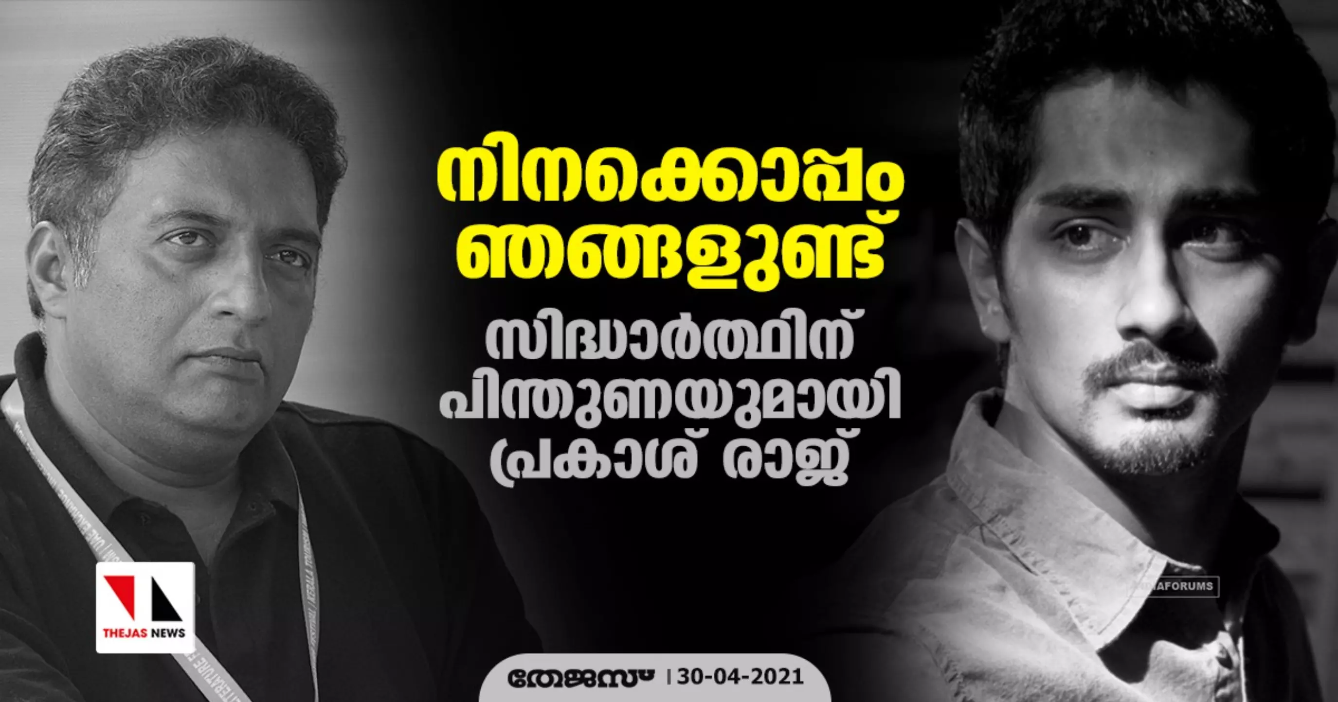"ആ ഭീരുക്കള് ഏത് തരംതാണ കളികളും കളിക്കും, അതൊക്കെ ഞാന് കണ്ടതാണ്. നീ കരുത്തോടെ നില്ക്കുമെന്ന് എനിക്കറിയാം മൈ ബോയി. #justasking മുടക്കമില്ലാതെ തുടരൂ, ഞങ്ങള് നിനക്കൊപ്പമുണ്ട്," IStandWithSiddharth ഹാഷ്ടാഗില് പ്രകാശ് രാജ് ട്വീറ്റ് ചെയ്തു.