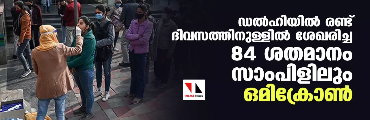 ഡല്ഹിയില് രണ്ട് ദിവസത്തിനുള്ളില് ശേഖരിച്ച 84 ശതമാനം സാംപിളിലും ഒമിക്രോണ്