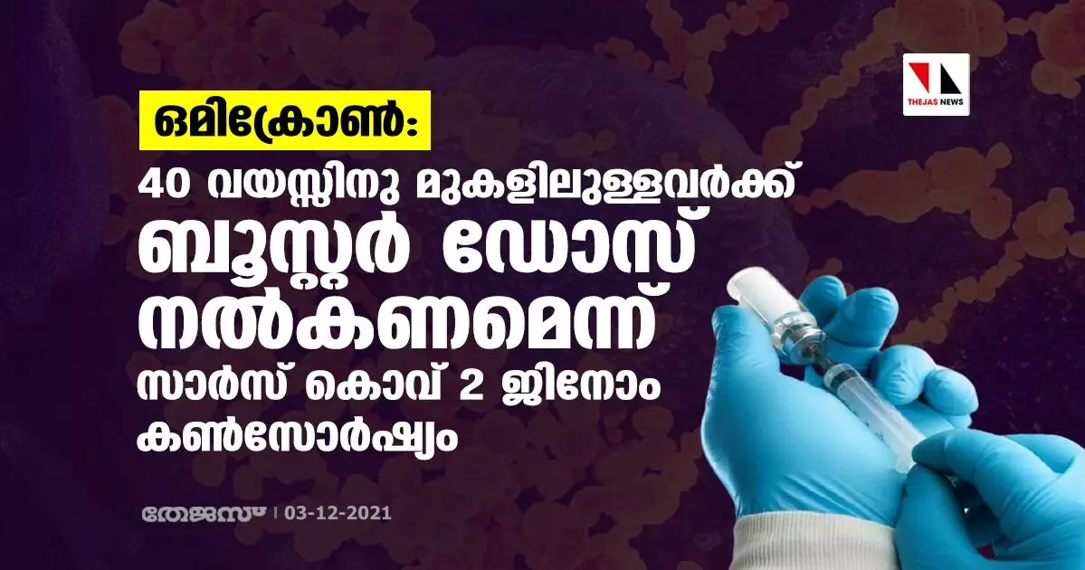 ഒമിക്രോണ്: 40 വയസ്സിനു മുകളിലുളളവര്ക്ക് ബൂസ്റ്റര് ഡോസ് നല്കണമെന്ന് സാര്സ് കൊവ് 2 ജിനോം കണ്സോര്ഷ്യം