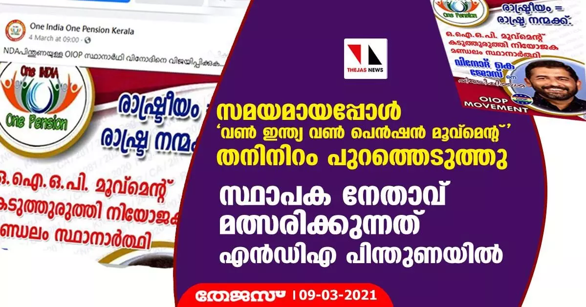 സമയമായപ്പോള് 'വണ് ഇന്ത്യ വണ് പെന്ഷന് മൂവ്മെന്റ്' തനിനിറം പുറത്തെടുത്തു: സ്ഥാപക നേതാവ് മത്സരിക്കുന്നത് എന്ഡിഎ പിന്തുണയില്