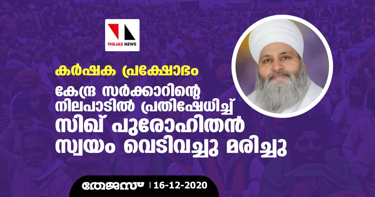കര്ഷക പ്രക്ഷോഭം: കേന്ദ്ര സര്ക്കാറിന്റെ നിലപാടില് പ്രതിഷേധിച്ച് സിഖ് പുരോഹിതന് സ്വയം വെടിവച്ചു മരിച്ചു