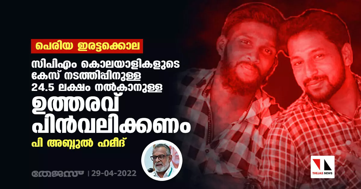 പെരിയ ഇരട്ടക്കൊല കേസ് നടത്തിപ്പ്: സിപിഎം കൊലയാളികള്ക്ക് 24.5 ലക്ഷം നല്കാനുള്ള ഉത്തരവ് പിന്വലിക്കണമെന്ന് പി അബ്ദുല് ഹമീദ്