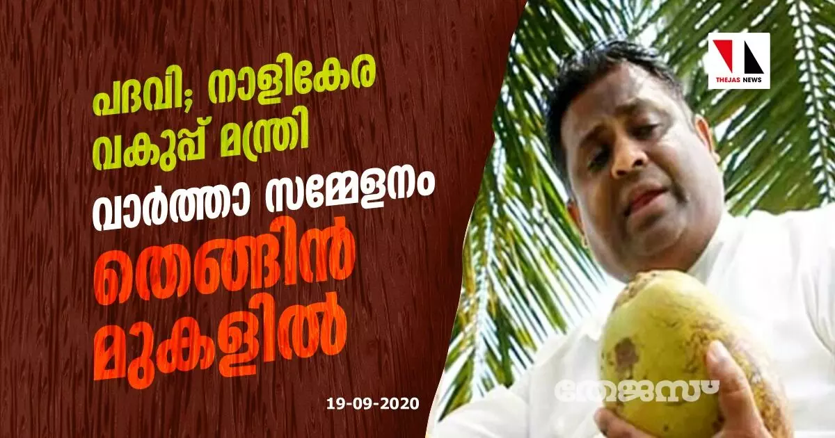 പദവി; നാളികേര വകുപ്പ് മന്ത്രി; വാര്ത്താ സമ്മേളനം തെങ്ങിന് മുകളില്