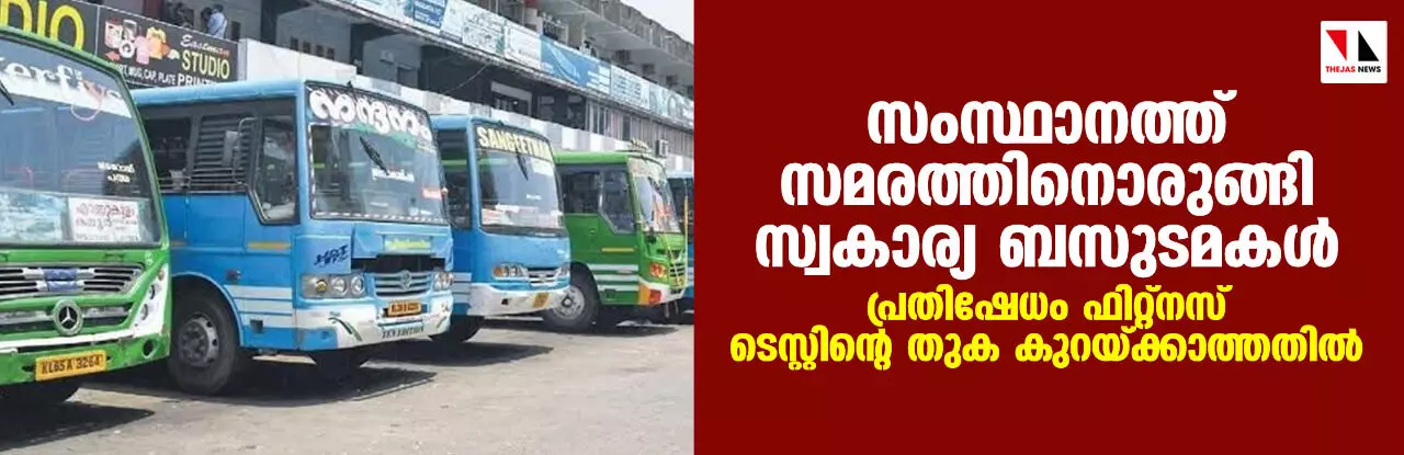 സംസ്ഥാനത്ത് സമരത്തിനൊരുങ്ങി സ്വകാര്യ ബസുടമകൾ; പ്രതിഷേധം ഫിറ്റ്നസ് ടെസ്റ്റിന്റെ തുക കുറയ്ക്കാത്തതിൽ