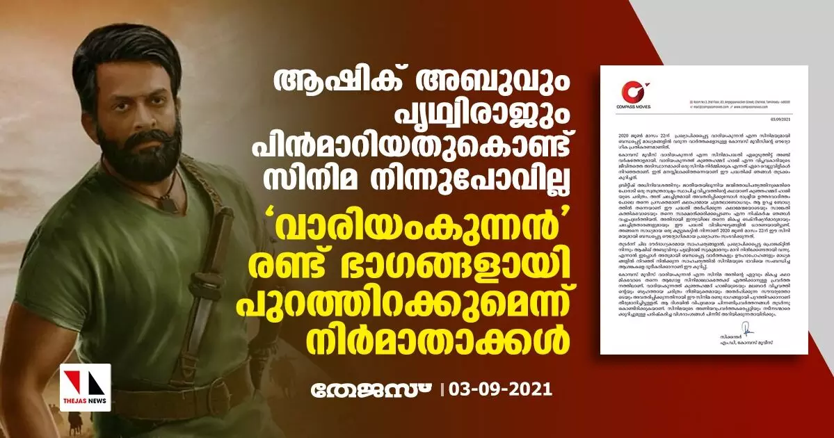 ആഷിക് അബുവും പൃഥ്വിരാജും പിന്മാറിയതുകൊണ്ട് സിനിമ നിന്നുപോവില്ല; 'വാരിയംകുന്നന്' രണ്ട് ഭാഗങ്ങളായി പുറത്തിറക്കുമെന്ന് നിര്മാതാക്കള്