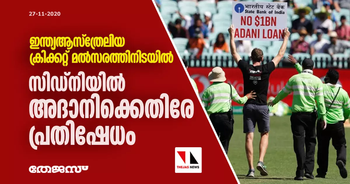 ഇന്ത്യ-ആസ്ത്രേലിയ ക്രിക്കറ്റ് മല്സരത്തിനിടയില് സിഡ്നിയില് അദാനിക്കെതിരേ പ്രതിഷേധം