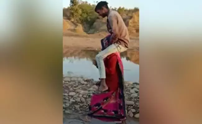 വിവാഹ മോചനത്തിന് ശിക്ഷ: ആദിവാസി യുവതിയെ കൊണ്ട് ഭര്ത്താവിന്റെ ബന്ധുവിനെ തോളിലേറ്റി നടത്തിച്ചു