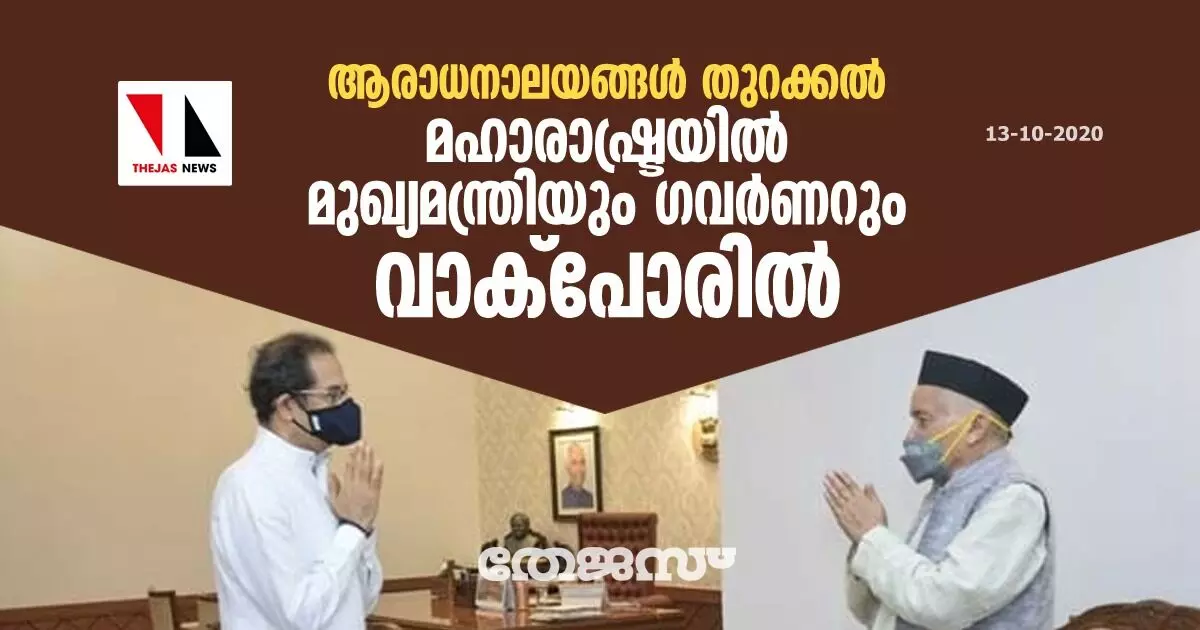 ആരാധനാലയങ്ങള് തുറക്കല്: മഹാരാഷ്ട്രയില് മുഖ്യമന്ത്രിയും ഗവര്ണറും വാക്പോരില്