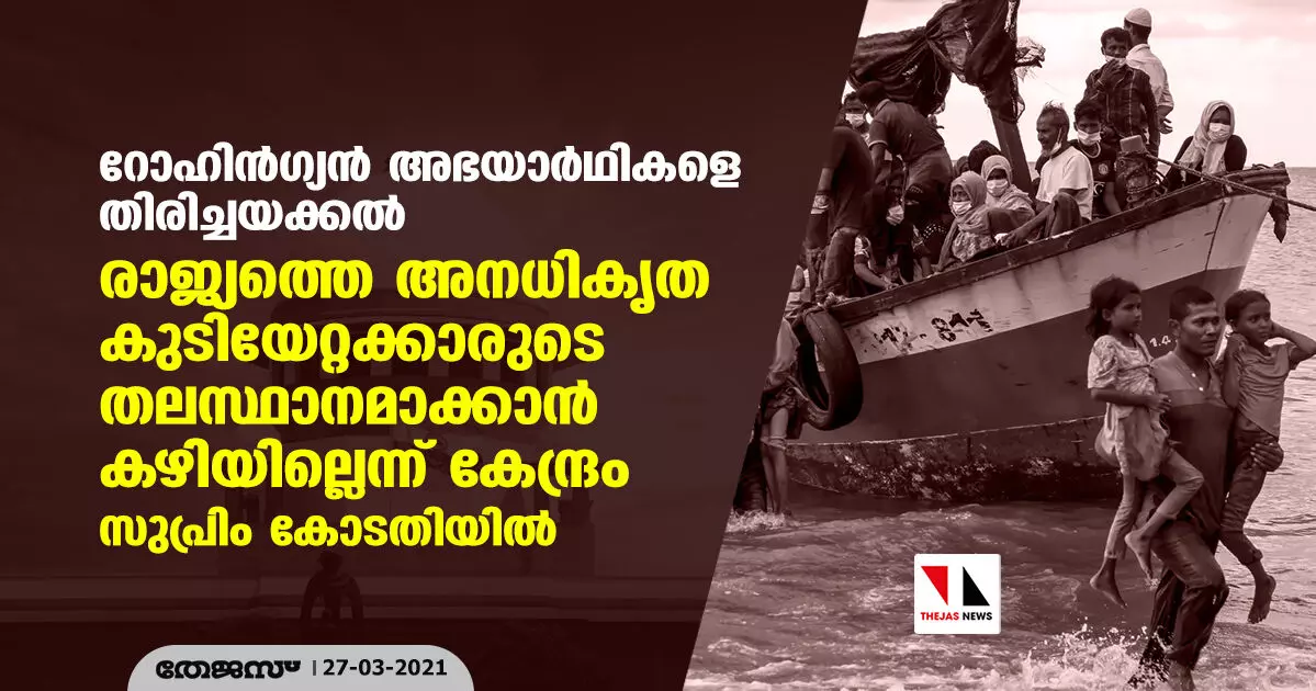 റോഹിന്ഗ്യന് അഭയാര്ഥികളെ തിരിച്ചയക്കല്; രാജ്യത്തെ അനധികൃത കുടിയേറ്റക്കാരുടെ തലസ്ഥാനമാക്കാന് കഴിയില്ലെന്ന് കേന്ദ്രം സുപ്രിം കോടതിയില്