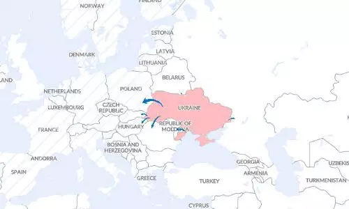 മാര്ച്ച് 20 വരെയുളള കണക്കനുസരിച്ച് പോളണ്ടിലേക്ക് 20,83,854 പേര് കുടിയേറി. റൊമാനിയയിലേക്ക് 5,35,461 പേരും മൊള്ഡോവയിലേക്ക് 3,65,197 പേരും ഹങ്കറിയിലേക്ക് 3,12,120 പേരും സ്ലോവാക്യയിലേക്ക് 2,50,036 പേരും റഷ്യന് ഫെഡറേഷനിലേക്ക് 2,31,764 പേരും ബെലാറസിലേക്ക് 3,765 പേരും കുടിയേറി.