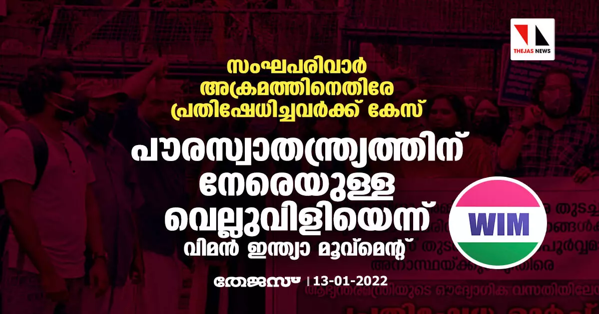 സംഘപരിവാര് അക്രമത്തിനെതിരേ പ്രതിഷേധിച്ചവര്ക്ക് കേസ്; പൗരസ്വാതന്ത്ര്യത്തിന് നേരെയുള്ള വെല്ലുവിളിയെന്ന് വിമന് ഇന്ത്യാ മൂവ്മെന്റ്
