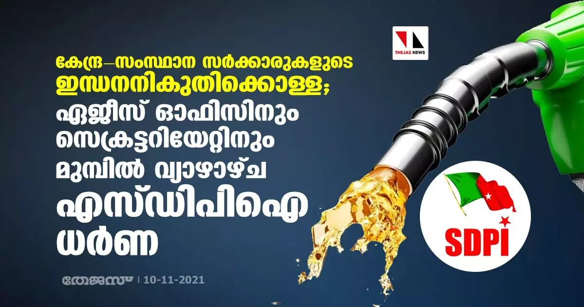 കേന്ദ്ര-സംസ്ഥാന സര്ക്കാരുകളുടെ ഇന്ധനനികുതിക്കൊള്ള; ഏജീസ് ഓഫിസിനും സെക്രട്ടറിയേറ്റിനും മുമ്പില് വ്യാഴാഴ്ച എസ്ഡിപിഐ ധര്ണ