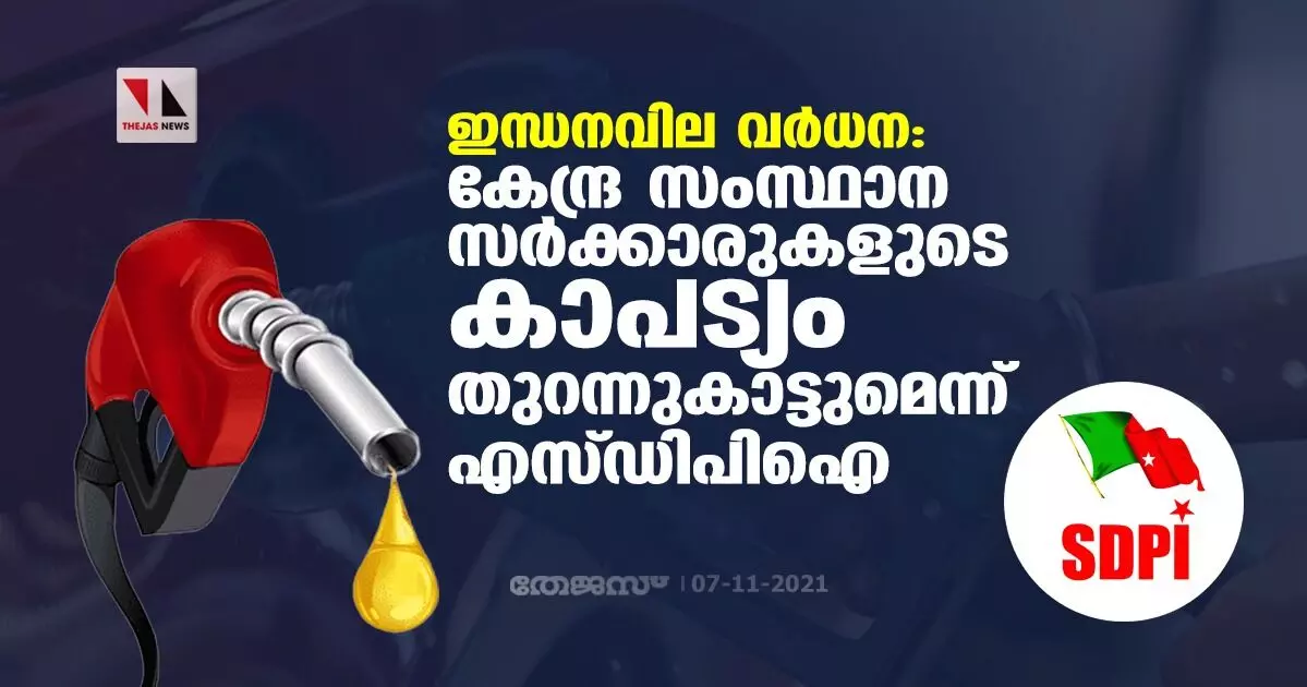 ഇന്ധനവില: 11ന് പ്രതിഷേധ ധര്ണ; കേന്ദ്ര സംസ്ഥാന സര്ക്കാരുകളുടെ കാപട്യം തുറന്നുകാട്ടുമെന്നും എസ്ഡിപിഐ