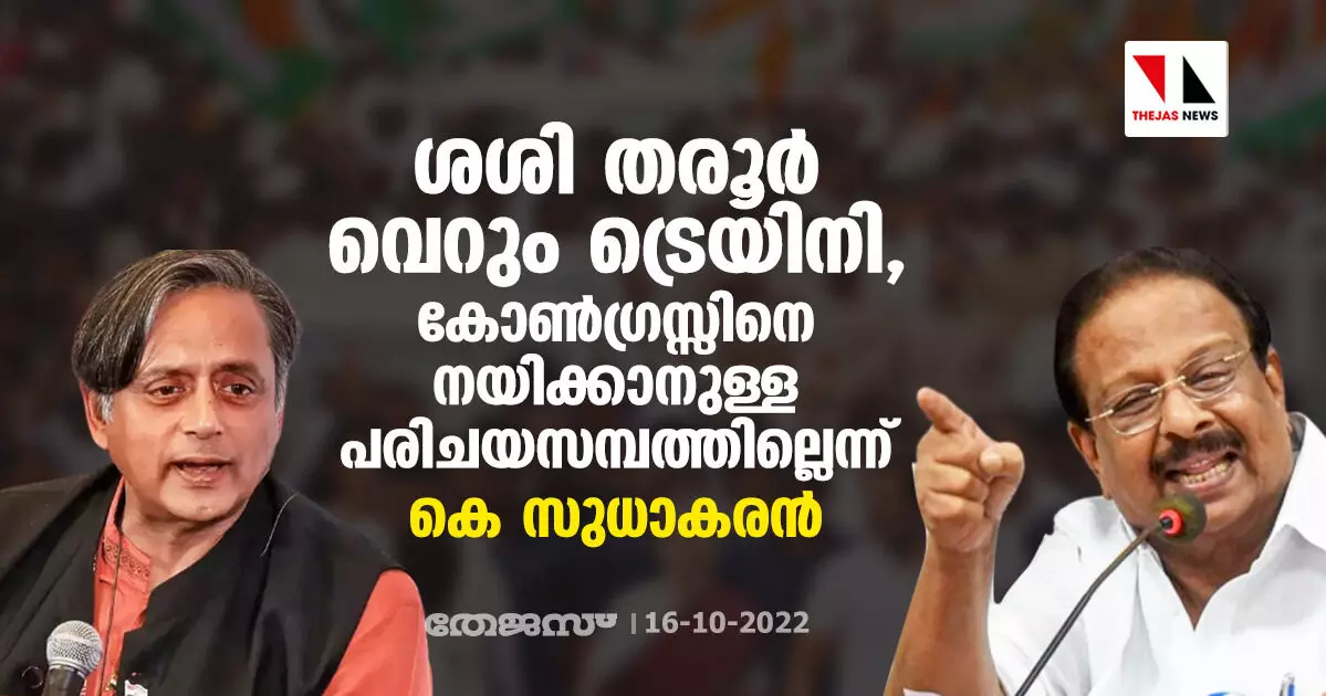 ശശി തരൂര് വെറും ട്രെയിനി, കോണ്ഗ്രസ്സിനെ നയിക്കാനുള്ള പരിചയസമ്പത്തില്ലെന്ന് കെ സുധാകരന്