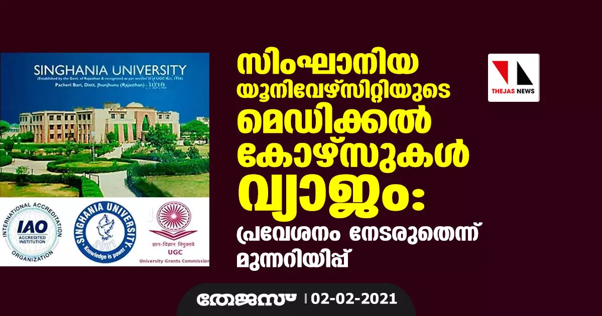 സിംഘാനിയ യൂനിവേഴ്സിറ്റിയുടെ മെഡിക്കല് കോഴ്സുകള് വ്യാജം: പ്രവേശനം നേടരുതെന്ന് മുന്നറിയിപ്പ്