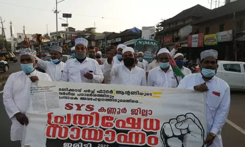 ഇരിട്ടി: കേരളത്തിലെ മതസൗഹാര്ദ അന്തരീക്ഷം കലുഷിതമാക്കുന്ന തരത്തില് ഉത്തരവാദപ്പെട്ട മതനേതാക്കള് തുടര്ച്ചയായി വര്ഗീയ പരാമര്ശങ്ങള് നടത്തുന്നത് അപലപനീയമാണെന്ന് എസ് കെ എസ് എസ് എഫ് ഇരിട്ടി മേഖല നേതാക്കള് അഭിപ്രായപ്പെട്ടു. കണ്ണൂര് സെന്റ് തോമസ് ചര്ച്ച് തിരുന്നാളിനോടനുബന്ധിച്ച് നടന്ന പ്രഭാഷണത്തില് ഇരിട്ടി മണിക്കടവ് സെന്റ് തോമസ് ചര്ച്ചില് ഫാദര് ആന്റണി നടത്തിയ വര്ഗീയ പരാമര്ശങ്ങള്ക്കെതിരെ ഉളിക്കല് എസ്.എച്ച്.ഒയ്ക്ക് പരാതി നല്കിയതിന് ശേഷം പ്രതികരിക്കുകയായിരുന്നു അവര്.