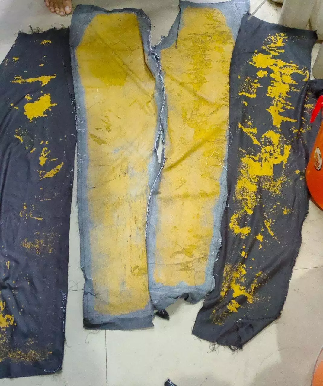 ജീന്സില് പെയിന്റടിച്ച രൂപത്തിലായിരുന്നു സ്വര്ണം. ഇത് ധരിച്ചാണ് കള്ളക്കടത്തുകാരന് വിമാനത്താവളത്തിലിറങ്ങിയത്. 14 ലക്ഷം രൂപ വിലമതിക്കുന്ന കുഴമ്പുരൂപത്തിലുള്ള സ്വര്ണമാണ് ജീന്സിലുണ്ടായിരുന്നത്. ആദ്യമായാണ് ഇത്തരത്തിലൊരു സ്വര്ണക്കടത്ത് രാജ്യത്ത് റിപോര്ട്ട് ചെയ്യുന്നത്.