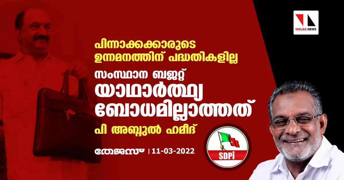പിന്നാക്കക്കാരുടെ ഉന്നമനത്തിന് പദ്ധതികളില്ല; സംസ്ഥാന ബജറ്റ് യാഥാര്ത്ഥ്യ ബോധമില്ലാത്തതെന്നും പി അബ്ദുല് ഹമീദ്