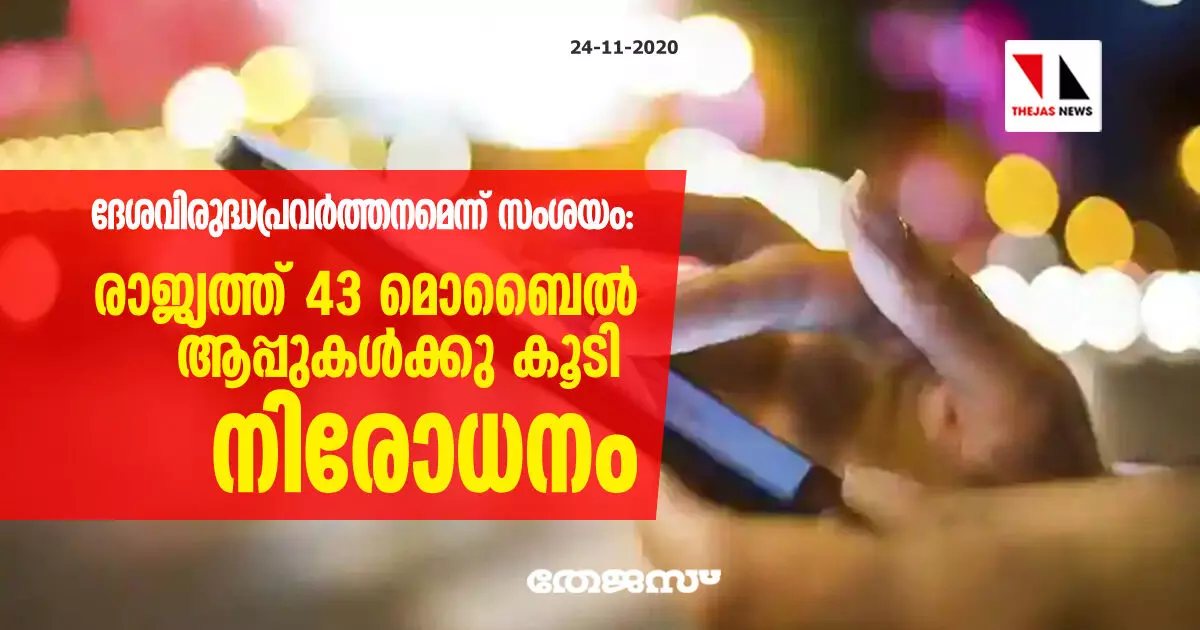 ദേശവിരുദ്ധപ്രവര്ത്തനമെന്ന് സംശയം: രാജ്യത്ത് 43 മൊബൈല് ആപ്പുകള്ക്കു കൂടി നിരോധനം