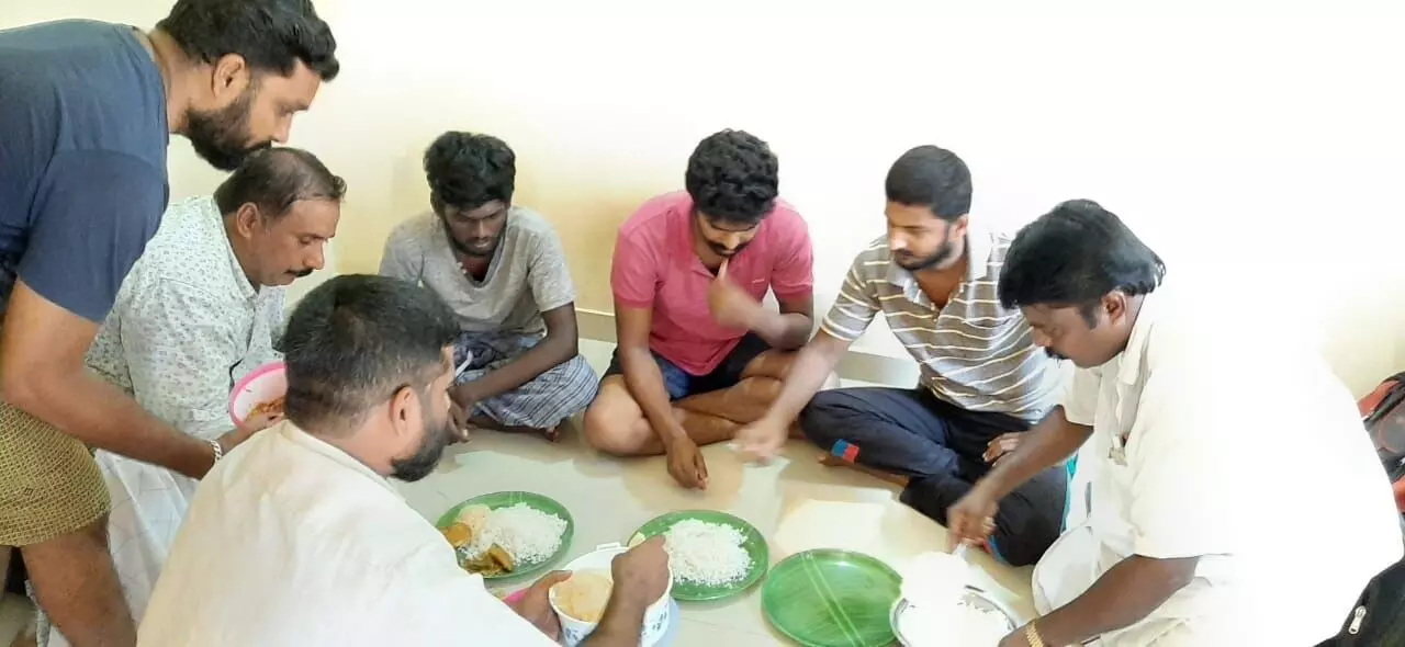 പൊതുപ്രവര്ത്തകനും മല്സ്യതൊഴിലാളി കോണ്ഗ്രസ് സംസ്ഥാന ട്രഷററുമായ മാമച്ചന് അഷ്റഫ് തന്റെ വീട്ടില് ഉണ്ടാക്കിയ ചോറും, സാമ്പാറും, ചെമ്മീന് പൊരിച്ചതും ഇവര്ക്ക് നല്കി. ഒപ്പം പൊതുപ്രവര്ത്തകരായ അമീര് താനൂര്, ഷഫീക്ക് പിലാതോട്ടത്തില്, ഷിബിന് ടി ഗംഗാധരന് എന്നിവരും കൂടെയുണ്ടായിരുന്നു.