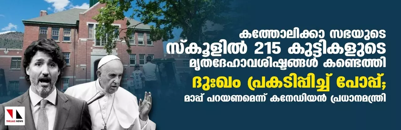 കത്തോലിക്കാ സഭയുടെ സ്കൂളില് 215 കുട്ടികളുടെ മൃതദേഹാവശിഷ്ടങ്ങള് കണ്ടെത്തി; ദുഃഖം പ്രകടിപ്പിച്ച് പോപ്പ്; മാപ്പ് പറയണമെന്ന് കനേഡിയന് പ്രധാനമന്ത്രി