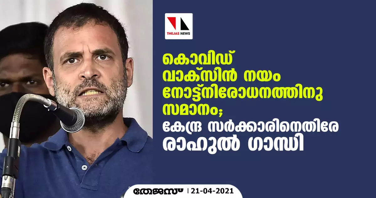 കൊവിഡ് വാക്സിന് നയം നോട്ട്നിരോധനത്തിനു സമാനം; കേന്ദ്ര സര്ക്കാരിനെതിരേ രാഹുല് ഗാന്ധി
