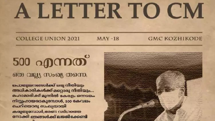 സത്യപ്രതിജ്ഞ ഓണ്ലൈനാക്കണം; മുഖ്യമന്ത്രിക്ക് മെഡിക്കല് കോളജ് വിദ്യാര്ത്ഥി യൂനിയന്റെ കത്ത്