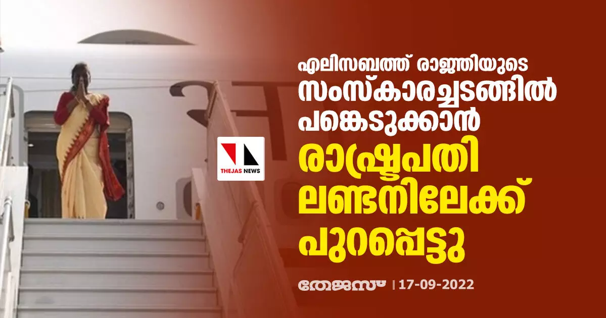 എലിസബത്ത് രാജ്ഞിയുടെ സംസ്കാരച്ചടങ്ങില് പങ്കെടുക്കാന് രാഷ്ട്രപതി ലണ്ടനിലേക്ക് പുറപ്പെട്ടു