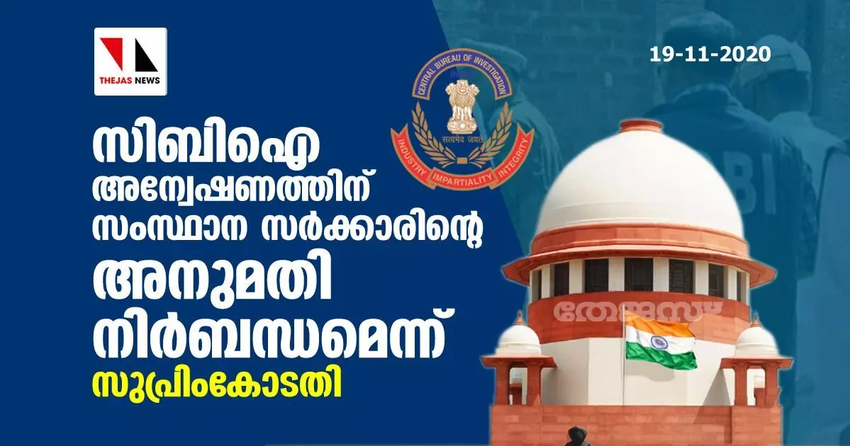 സിബിഐ അന്വേഷണത്തിന് സംസ്ഥാന സര്ക്കാരിന്റെ അനുമതി നിര്ബന്ധമെന്ന് സുപ്രിംകോടതി