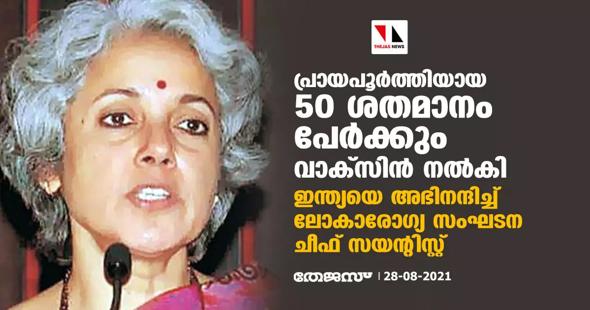 പ്രായപൂര്ത്തിയായ 50 ശതമാനം പേര്ക്കും വാക്സിന് നല്കി; ഇന്ത്യയെ അഭിനന്ദിച്ച് ലോകാരോഗ്യ സംഘടന ചീഫ് സയന്റിസ്റ്റ്