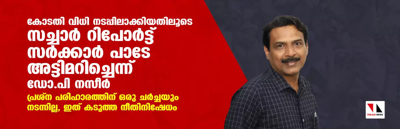 പ്രശ്നപരിഹാരത്തിന് ഒരു ചര്ച്ചയും നടത്തിയില്ല; സച്ചാര് കമ്മിഷന് റിപോര്ട്ട് സര്ക്കാര് പാടേ അട്ടിമറിച്ചെന്നും ഡോ.പി നസീര്
