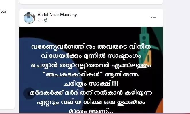 വരേണ്യവര്ഗ്ഗത്തിന് സാഷ്ടാംഗം ചെയ്യാത്തവര് എക്കാലത്തും 'അപകടകാരികള്' ആയിരുന്നു; സധൈര്യം നിലപാട് പറഞ്ഞ് മഅ്ദനി