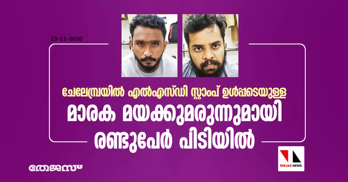 ചേലേമ്പ്രയില് എല്എസ്ഡി സ്റ്റാംപ് ഉള്പ്പടെയുള്ള മാരക മയക്കുമരുന്നുമായി രണ്ടുപേര് പിടിയില്