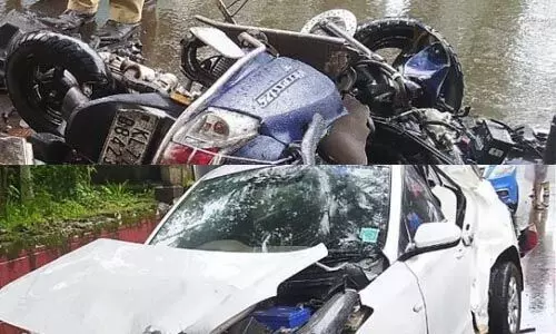 കോഴിക്കോട്: ഈസ്റ്റ് മുക്ക് പള്ളിയുടെ സമീപം കാറും ബൈക്കും കൂട്ടിയിടിച്ചുണ്ടായ അപകടത്തില് ഗുരുതരമായി പരിക്കേറ്റ് ചികില്സയിലായിരുന്ന രണ്ടാമത്തെയാളും മരിച്ചു. കാവിലുംപാറ പീടികയുള്ളതില് ബിപിന് സുരേഷാണ് മരിച്ചത്. തിങ്കളാഴ്ച രാവിലെ 10 മണിയോടെയായിരുന്നു സംഭവം. അപകടത്തില് കൊയിലാണ്ടി സ്വദേശി തല്ക്ഷണം മരിച്ചിരുന്നു. മരിച്ച രണ്ടുപേരും ഒരേ സ്ഥാപനത്തില് ജോലിചെയ്യുന്നവരാണ്. അപകടത്തില് ബൈക്കും കാറും പൂര്ണമായി തകര്ന്നു.