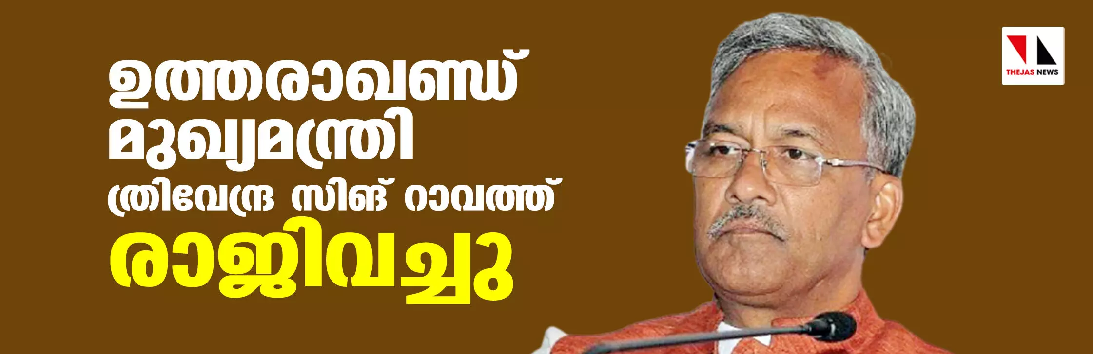 ഡറാഡൂണ്: ഉത്തരാഖണ്ഡ് മുഖ്യമന്ത്രി ത്രിവേന്ദ്ര സിങ് റാവത്ത് രാജി സമര്പ്പിച്ചു. റാവത്ത് രാജിവച്ചേക്കുമെന്ന് രാവിലെത്തന്നെ മാധ്യമങ്ങള് റിപോര്ട്ട് ചെയ്തിരുന്നു. കേന്ദ്ര-സംസ്ഥാന നേതൃത്വങ്ങള് റാവത്തിന്റെ പ്രകടനത്തില് അസംതൃപ്തിയറിയിച്ച സാഹചര്യത്തിലാണ് റാവത്ത് രാജിവച്ചൊഴിയുന്നത്.