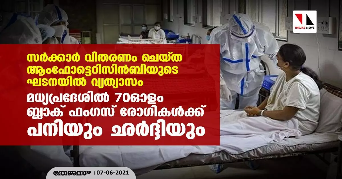 സര്ക്കാര് വിതരണം ചെയ്ത ആംഫോട്ടെറിസിന്-ബിയുടെ ഘടനയില് വ്യത്യാസം; മധ്യപ്രദേശില് 70ഓളം ബ്ലാക് ഫംഗസ് രോഗികള്ക്ക് പനിയും ഛര്ദ്ദിയും