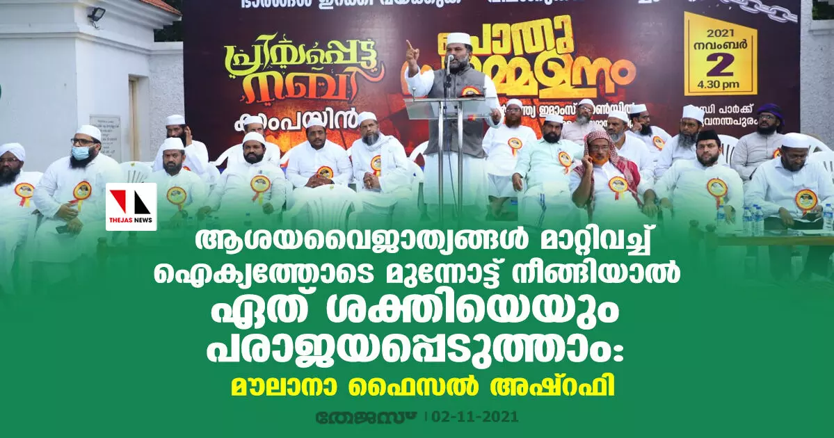 ആശയവൈജാത്യങ്ങള് മാറ്റിവച്ച് ഐക്യത്തോടെ നീങ്ങിയാല് ഏത് ശക്തിയെയും പരാജയപ്പെടുത്താം: മൗലാനാ ഫൈസല് അഷ്റഫി