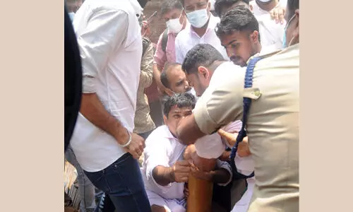 ജില്ലാ പ്രസിഡന്റ് സുദീപ് ജെയിംസ്, പ്രിനില് മതുക്കോത്ത്, നികേത് നാറാത്ത് തുടങ്ങിയവരുടെ നേതൃത്വത്തിലുള്ള പ്രവര്ത്തകരാണ് പ്രതിഷേധ സമരത്തിന് എത്തിയത്. കളക്ട്രേറ്റ് വളപ്പില് നാട്ടിയ കല്ലിന് സംരക്ഷണ വലയം തീര്ത്ത യൂത്ത് കോണ്ഗ്രസ് പ്രവര്ത്തകരെ അറസ്റ്റ് ചെയ്ത് മാറ്റാന് പോലിസ് ഏറെ വിഷമിച്ചു. ടൗണ് സിഐ ശ്രീജിത്ത് കൊടേരിയുടെ നേതൃത്വത്തിലെത്തിയ പോലിസുകാര് രാവിലെ മുതല് കളക്ടറേറ്റിലെ രണ്ട് കവാടത്തിലും നിലയുറപ്പിച്ചിരുന്നുവെങ്കിലും പോലിസിനെ വെട്ടിച്ചാണ് പ്രവര്ത്തകര് വളപ്പില് കയറിയത്.