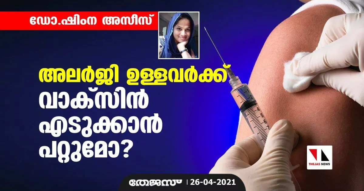 നിലവിലെ സാഹചര്യത്തില് തീര്ത്തും അവഗണിക്കാവുന്ന ചെറിയ തോതിലുള്ള അലര്ജികളേക്കാള് പ്രധാനം കൊറോണ വന്നു മരിക്കാതിരിക്കുക എന്നത് തന്നെയാണ്. RISK V/S BENEFIT RATIO നോക്കുകയാണെങ്കില് ഇവിടത്തെ റിസ്ക് കൊവിഡ് രോഗം ബാധിച്ച് അതിന്റെ സഹനമോ മരണമോ വരുന്നതും എതിര്വശത്ത് ഉള്ളത് അലര്ജിയുമാണ്. ഇങ്ങനെയൊരു അവസരത്തില് അലര്ജി ഉള്ള വ്യക്തിക്ക് വാക്സിന് എടുക്കണമെങ്കില് തീര്ച്ചയായും നിങ്ങളെ ചികില്സിക്കുന്ന ഡോക്ടറുടെ നിര്ദേശം തേടുന്നതാവും നല്ലത്. അദ്ദേഹം ഉറപ്പ് തന്നാല് നിങ്ങള്ക്ക് ധൈര്യമായി വാക്സിനെടുക്കാം. അനാവശ്യമായ ആശുപത്രി സന്ദര്ശനങ്ങള് ഒഴിവാക്കണം എന്നത് കൊണ്ട് ഫോണ് വഴിയോ മറ്റോ ചോദിക്കുന്നതാവും സുരക്ഷിതം എന്നത് കൂടി ഓര്മിപ്പിക്കുന്നു.