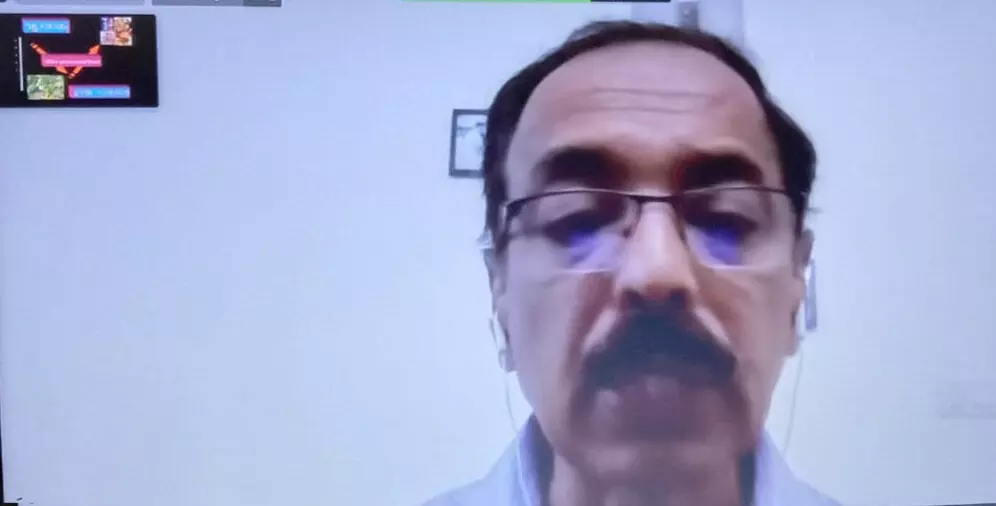വെബിനാറില് ശ്രീ ചിത്ര ഇന്സ്റ്റിറ്റ്യൂട്ട് ഓഫ് മെഡിക്കല് സയന്സസ് ആന്റ് ടെക്നോളജി കാര്ഡിയോളജി വിഭാഗം റിട്ട. പ്രഫ. ഡോ. എസ് ശിവശങ്കരന് സംസാരിക്കുന്നു