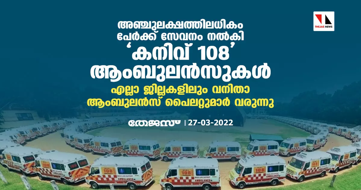 ഏറ്റവും കുറവ് ട്രിപ്പുകള് ഉള്ളത് ഇടുക്കി ജില്ലയിലാണ്. 15,002 ട്രിപ്പുകളാണ് ഇടുക്കി ജില്ലയില് കനിവ് 108 ആംബുലന്സുകള് നടത്തിയത്. കൊല്ലം 35,814, പത്തനംതിട്ട 24,534, ആലപ്പുഴ 40,039, കോട്ടയം 32,758, എറണാകുളം 37,829, തൃശൂര് 38,929, പാലക്കാട് 52,404, മലപ്പുറം 44,365, കോഴിക്കോട് 37,037, വയനാട് 18,920, കണ്ണൂര് 33,036, കാസര്കോട് 21,876 എന്നിങ്ങനെയാണ് മറ്റു ജില്ലകളില് കനിവ് 108 ആംബുലന്സുകള് സേവനം നല്കിയ ട്രിപ്പുകള്. അന്താരാഷ്ട്ര വനിതാ ദിനത്തോടനുബന്ധിച്ച് ആദ്യമായി 108 ആംബുലന്സില് വനിതാ പൈലറ്റിനെ നിയമിച്ചു. എല്ലാ ജില്ലകളിലും വനിതാ ആംബുലന്സ് പൈലറ്റുമാരെ നിയമിക്കാനുള്ള നടപടിക്രമങ്ങള് പുരോഗമിക്കുകയാണെന്ന് ആരോഗ്യമന്ത്രി വീണാ ജോര്ജ് അറിയിച്ചു.