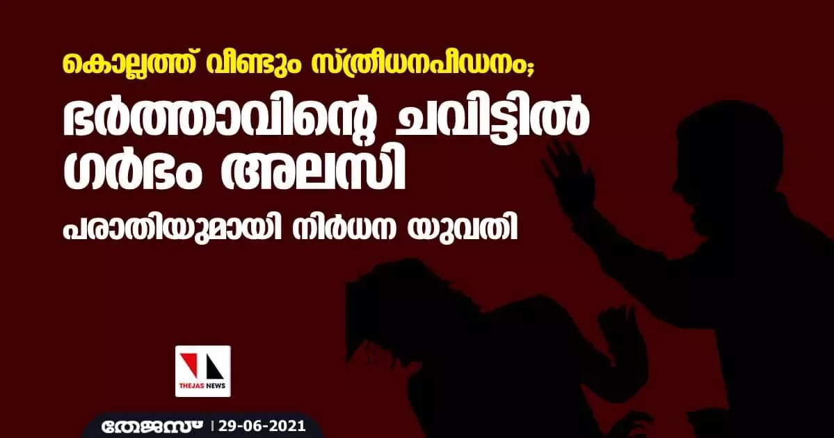 കൊല്ലത്ത് വീണ്ടും സ്ത്രീധനപീഡനം; ഭര്ത്താവിന്റെ ചവിട്ടില് ഗര്ഭം അലസി; പരാതിയുമായി നിര്ധന യുവതി