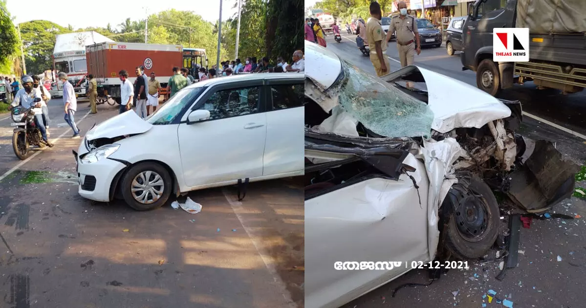 വ്യാഴാഴ്ച്ച വൈകുന്നേരം 4.15 ന് താനൂർ ശോഭപറമ്പ് ക്ഷേത്രത്തിന് സമീപം എറണാകുളത്തു നിന്നും കണ്ണൂരിലേക്ക് പോവുകയായിരുന്ന കാറിൽ എതിരെവന്ന മൽസ്യം കയറ്റിയ കണ്ടെയ്നർ ലോറി കാറിൽ ഇടിച്ചാണ് അപകടം ഉണ്ടായത്. കാർ യാത്രക്കാരായ ഒരു സ്ത്രീ ഉൾപ്പടെ രണ്ട് പേർക്ക് പരിക്കേറ്റു. ഇവരെ കോഴിക്കോട് മെഡിക്കൽ കോളജിലേക്ക് കൊണ്ട് പോയി.