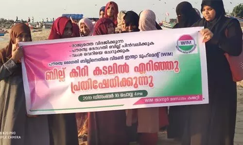 വിമന് ഇന്ത്യ മൂവ്മെന്റ് പ്രവര്ത്തകര് പൗരത്വബില്ല് കീറി കടലിലെറിഞ്ഞു