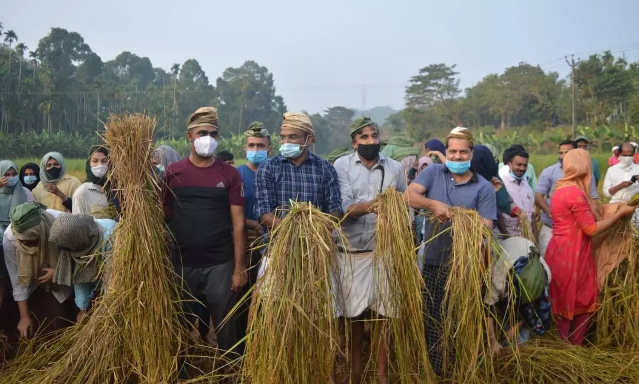 കർഷക വേഷത്തിൽ കലക്ടർ; കൊയ്ത്തുൽസവം കെങ്കേമമാക്കി കുട്ടികൾ