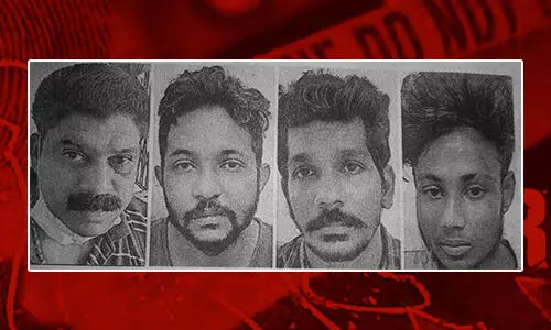 കൊടുങ്ങല്ലൂർ സ്വദേശികളായ ആലതോപ്പിൽ വീട്ടിൽ വി ഷാജി (53), പുല്ലൂറ്റ് എസ് വിനീത് (36), പതിശ്ശേരി യു ശങ്കർ (34), എരുത്തേമ്പതി മൂങ്കിൽമട എം രാജ്കുമാർ (22) എന്നിവരെയാണു പിടികൂടിയത്. തൃശൂർ മതിലകം സ്റ്റേഷനിൽ കൊലപാതകമുൾപ്പെടെ 6 കേസുകളിലെ പ്രതിയാണു പിടിയിലായ ഷാജി. കോടതിയിൽ ഹാജരാക്കിയ പ്രതികളെ റിമാൻഡ് ചെയ്തു.