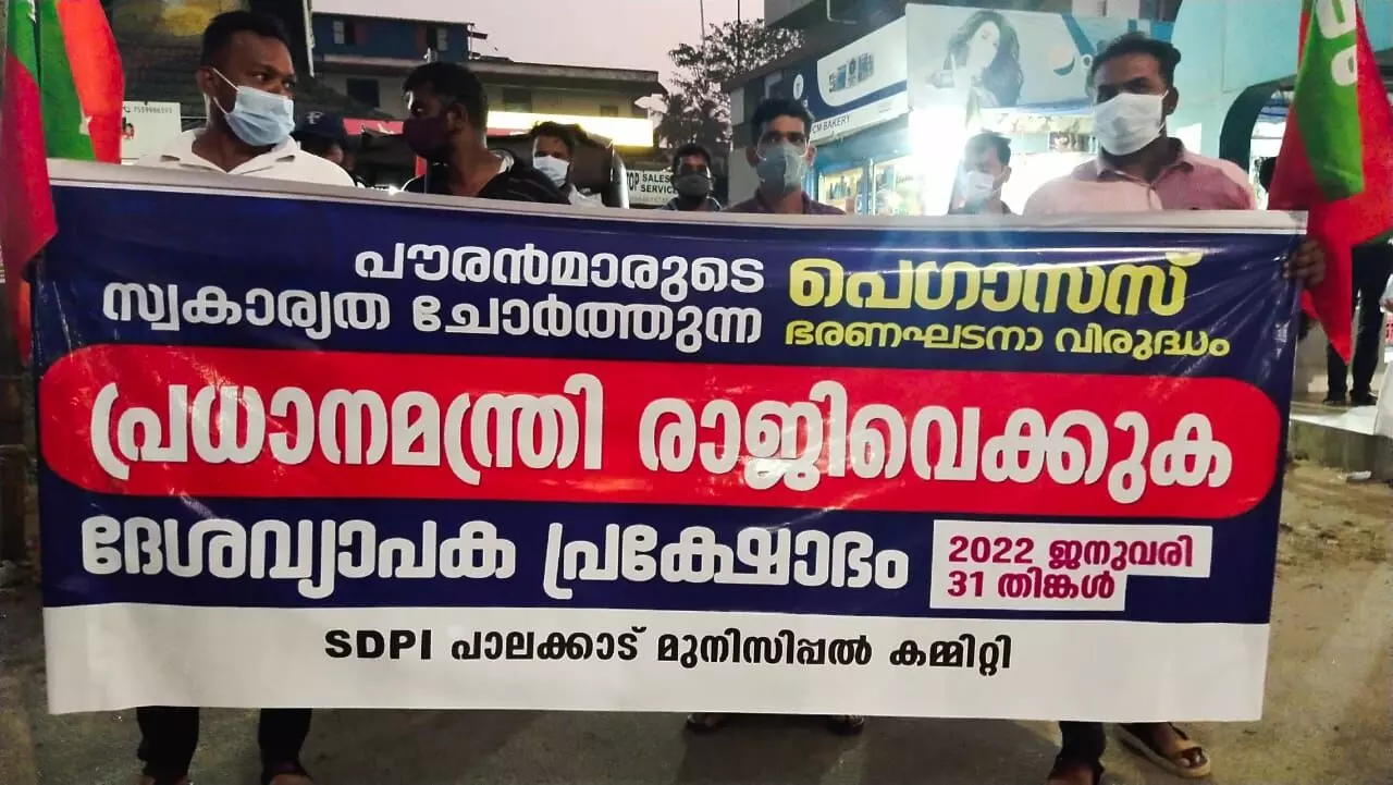 പാലക്കാട്: പൗരന്മാരുടെ സ്വകാര്യത ചോര്ത്തുന്ന പെഗാസസ് ഭരണഘടനാ വിരുദ്ധം അതിൽ പ്രധാനമന്ത്രി രാജിവെക്കുക എന്ന ദേശവ്യാപക പ്രക്ഷോഭത്തിന്റെ ഭാഗമായി പാലക്കാട് മുനിസിപ്പൽ കമ്മിറ്റി ഒലവക്കോട് ജങ്ഷനിൽ പ്രക്ഷോഭ പരിപാടി സംഘടിപ്പിച്ചു.