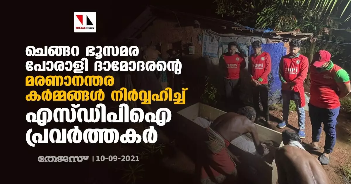 ചെങ്ങറ ഭൂസമര പോരാളി ദാമോദരന്റെ മരണാനന്തര കർമ്മങ്ങൾ നിർവ്വഹിച്ച് എസ്ഡിപിഐ പ്രവർത്തകർ