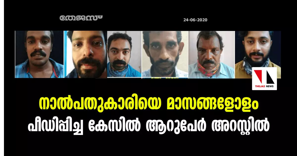 നാല്പതുകാരിയെ മാസങ്ങളോളം പീഡിപ്പിച്ച കേസില് ആറു പേർ അറസ്റ്റിൽ